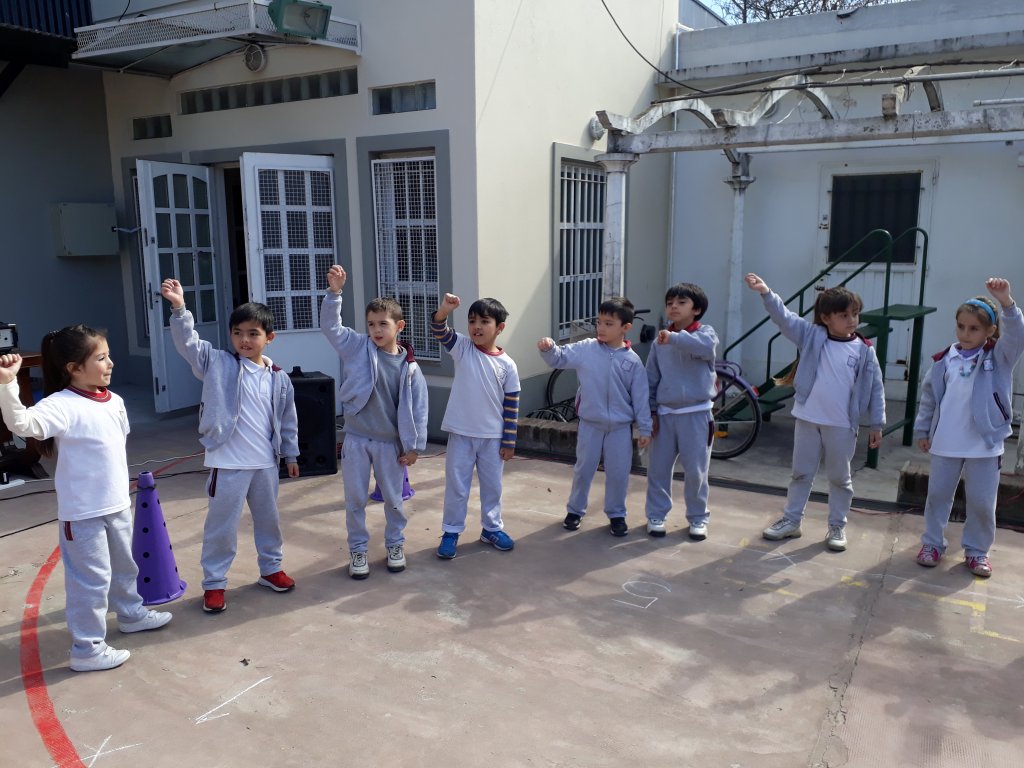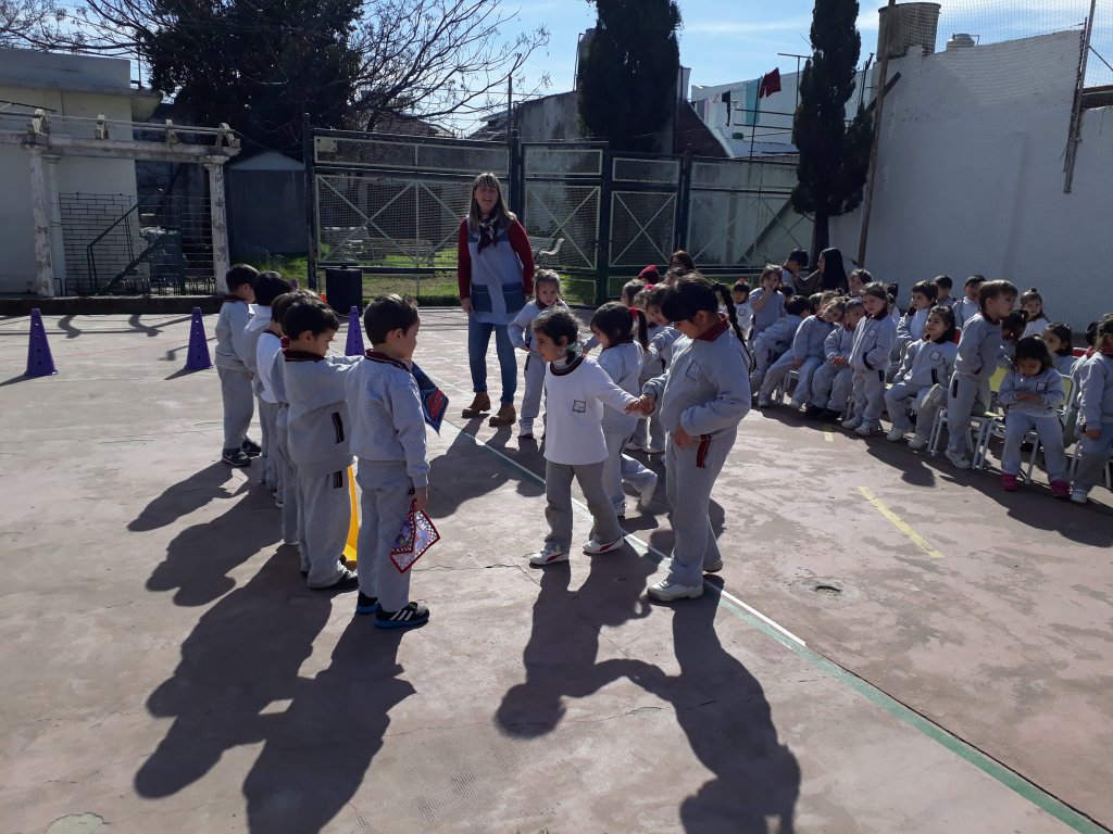 Así se preparaban los chicos de todas las salas del jardín turno tarde para el acto del 17 de agosto